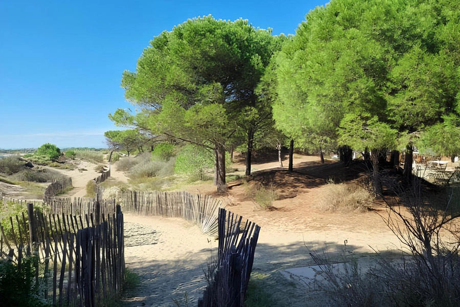 Bordered by a large wild beach and a forest of tamarisk and pine trees, it offers an ideal setting to recharge your batteries by the Mediterranean Sea.